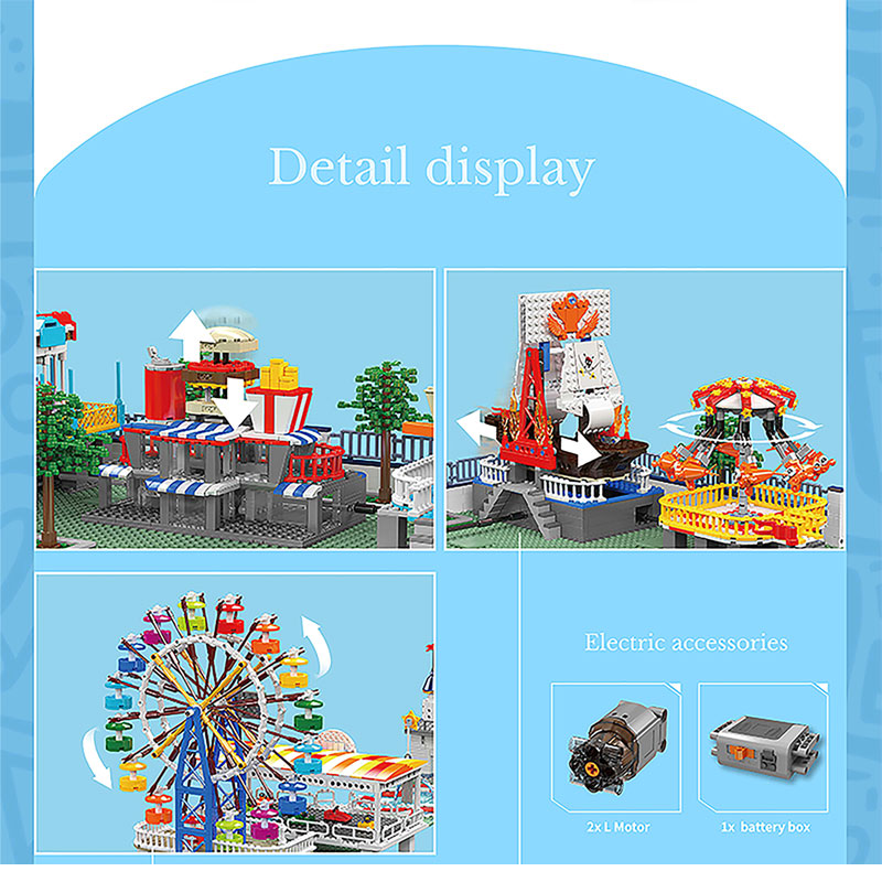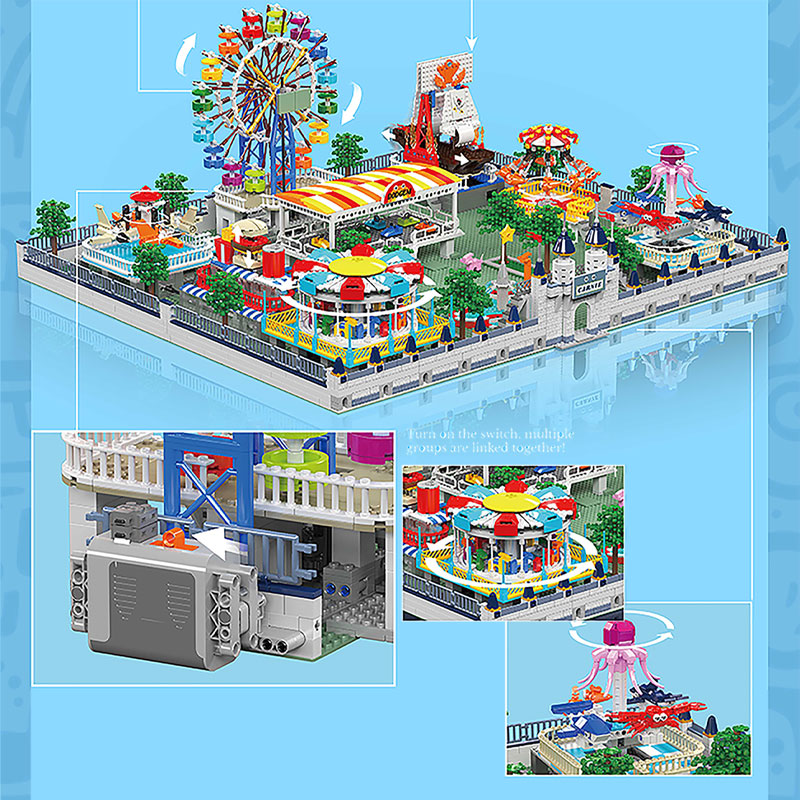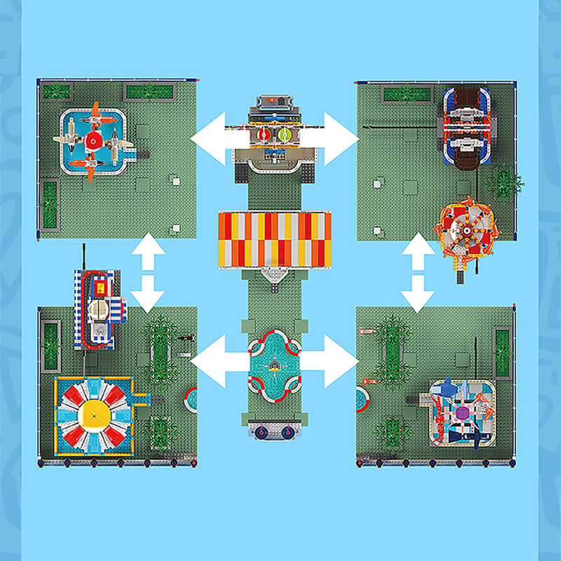 Mit dem Mould King 11022 Amusement Park erwartet dich ein gigantischer Klemmbaustein-Bausatz mit über 5.200 Teilen. Das elektrisch betriebene Modell stellt einen kompletten Freizeitpark mit beweglichen Fahrgeschäften und realistischen Details dar. Durch die integrierten Funktionen entsteht ein lebendiges und beeindruckendes Modell, das sowohl beim Aufbau als auch beim Ausstellen begeistert. Dieses Set richtet sich an erfahrene Baumeister und Sammler, die ein außergewöhnliches Highlight für ihre Klemmbaustein-Sammlung suchen.
