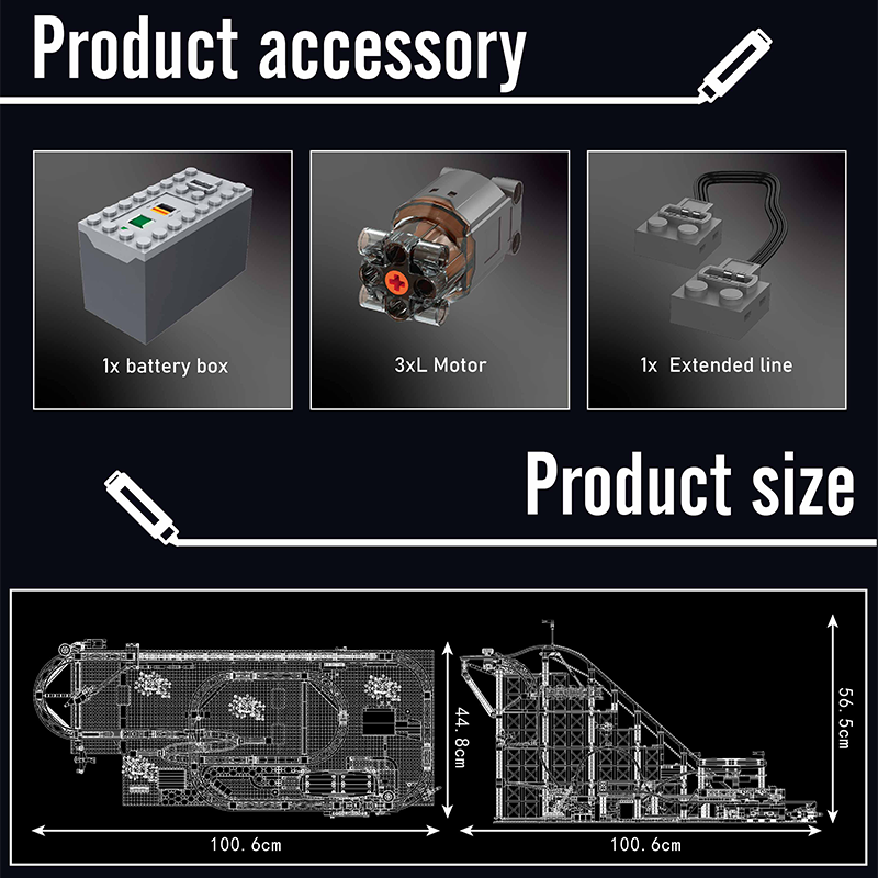 Mit 3.662 Teilen bietet das Mould King 11014 Roller Coaster Set eine motorisierte Achterbahn mit realistischem Schienensystem. Durch die elektrische Steuerung fahren die Wagen kontinuierlich über Kurven, Anstiege und Abfahrten. Das Modell ist ein Highlight für Freizeitpark-Fans und sorgt auch nach dem Aufbau für viel Bewegung.