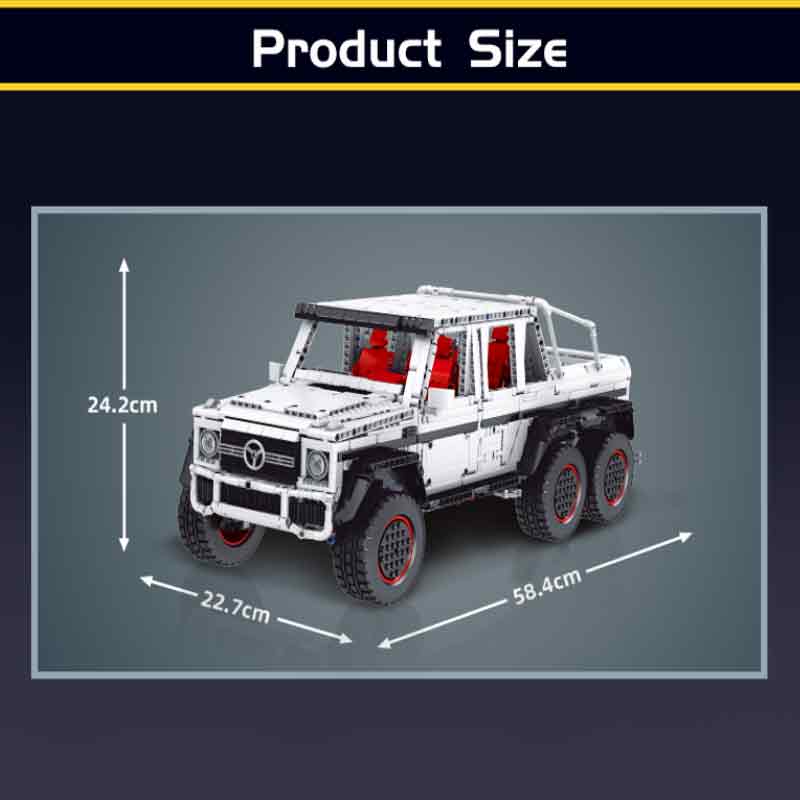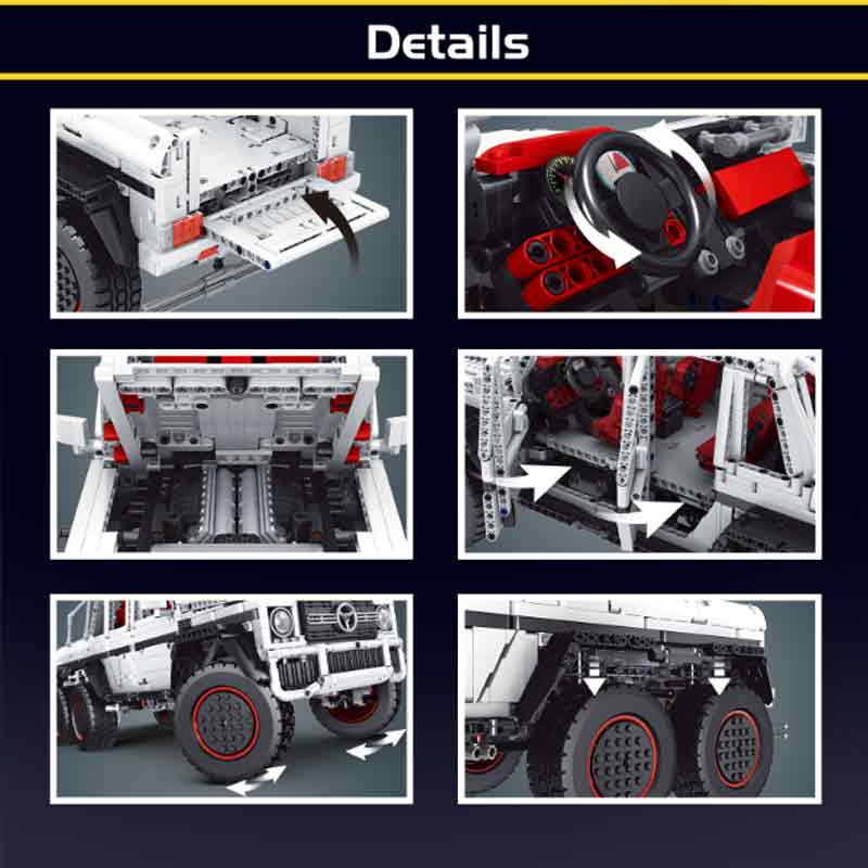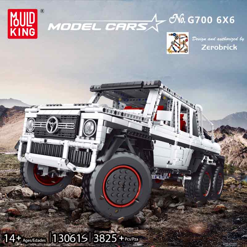 Der Geländewagen 6x6 von Mould King gehört zu einen der besten Geländewagen auf dem Markt.  Aufgrund der Zusammenarbeit mit Zerobricks sieht das Modell nicht nur gut in der Vitrine aus, sondern kann auch im Gelände durch den starken 6x6 Antrieb auf 3 Achsen überzeugen. Durch das 2-Gang-Getriebe sowie der Federung und der umfangreichen Bodenfreiheit sind Hindernisse kein Problem.  Die Mitgelieferten Motoren geben dem Weißen-Monster die benötigte Drehzahl/Leistung.