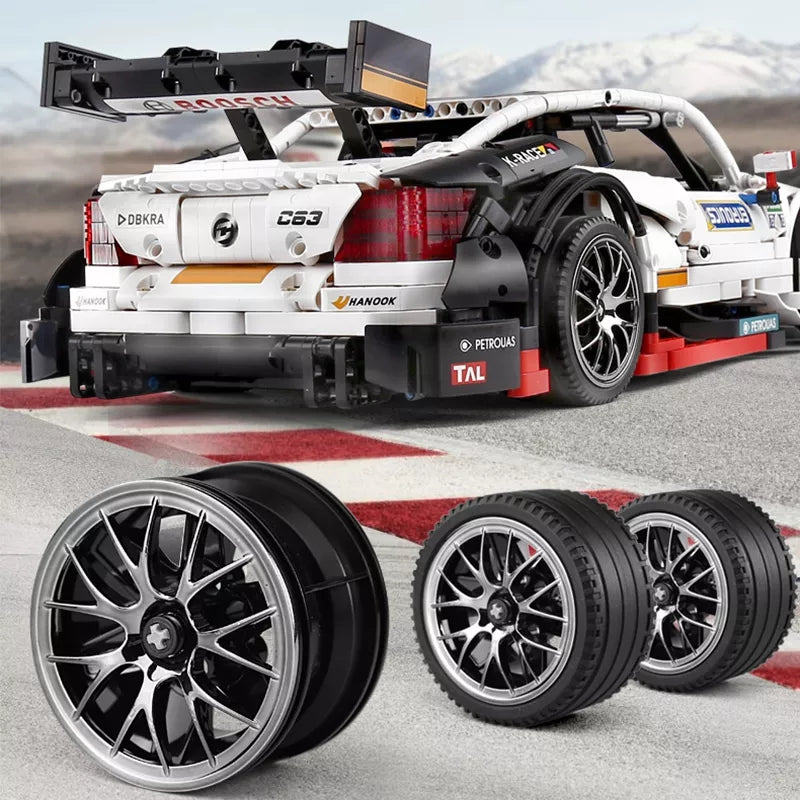 Der weiße Mould King Rennwagen mit 2270 Teilen ähnelt dem Mercedes C63 AMG DTM. Mit einem 1:8 Maßstab ist das Auto realitätsgetreu gehalten und ziemlich groß. Er bringt einige Features mit sich, darunter ein alleinstehendes Chassis, eine Motorhaube und Türen, die man öffnen kann, der Spiegel und das Lenkrad können rotiert werden, der Motor simuliert mechanische Bewegungen beim Fahren. Ein echter Hingucker!