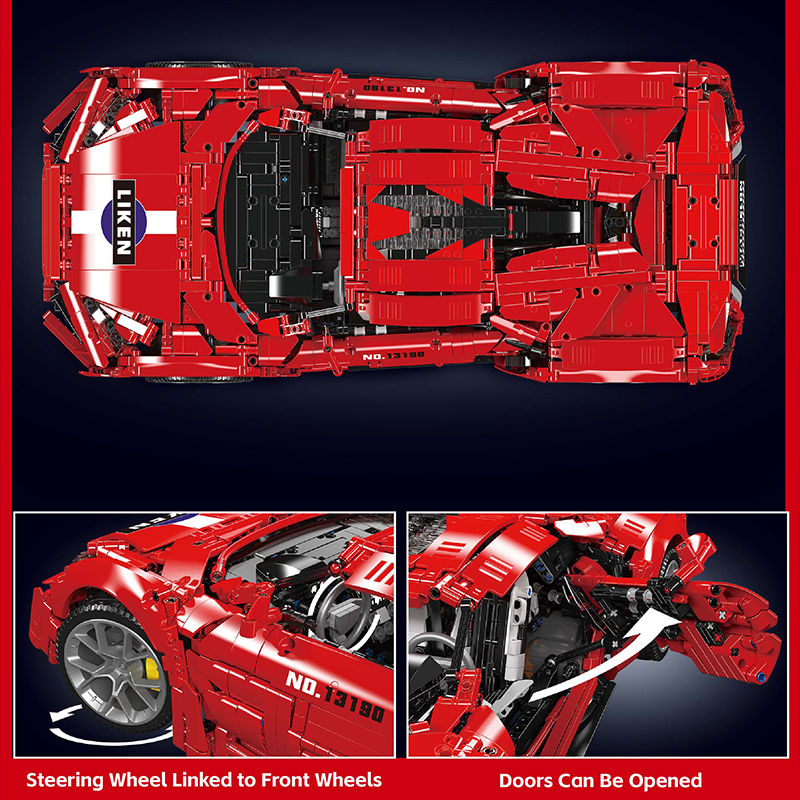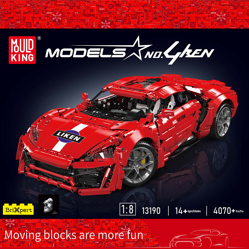 Das Mould King 13190 Liken Remote besteht aus 4.070 Teilen und ist ein motorisierter Sportwagen. Mit realistischen Formen, detaillierter Kabinengestaltung und robuster Bauweise überzeugt das Modell durch Technik und Design.