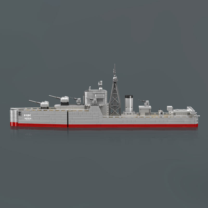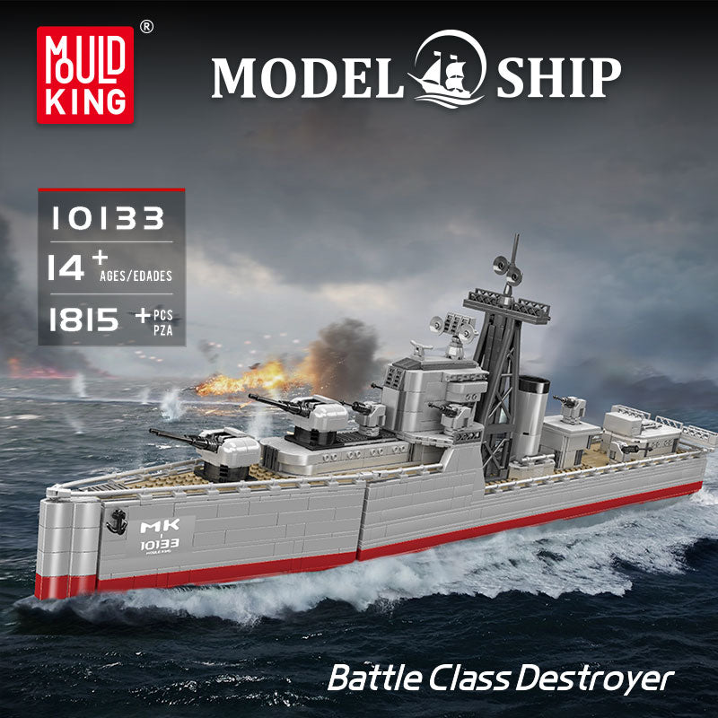 Der Mould King 10133 Batter Class Destroyer ist ein Klemmbaustein Bausatz mit 1.815 Teilen. Das detailreiche Kriegsschiff Modell zeigt realistische Aufbauten, Geschütze und eine solide Konstruktion. Es ist ein ideales Set für Fans moderner Marineschiffe und Sammler von besonderen Klemmbaustein Modellen.