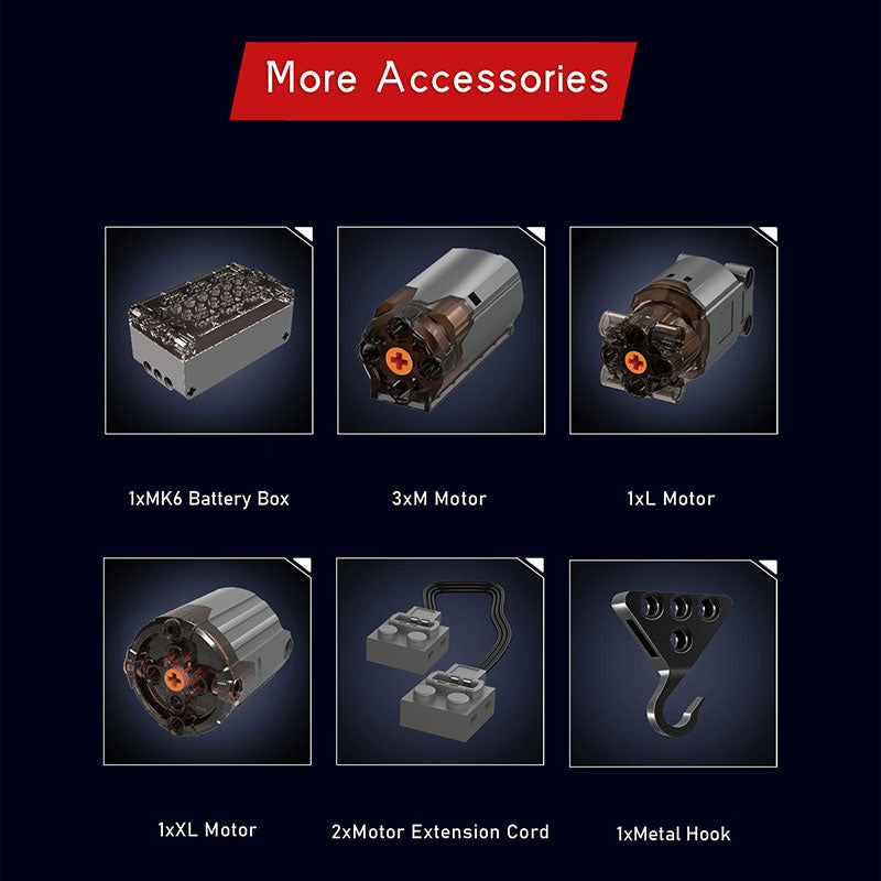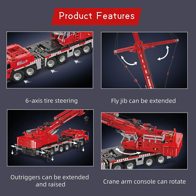 Mit dem Mould King 17065 GMK Technik Crane erhältst du ein monumentales Kranmodell mit über 4.500 Teilen. Die motorisierte Steuerung bringt zahlreiche Funktionen zum Leben, vom beweglichen Ausleger bis zu den stabilen Stützen. Dieses Set ist ein Highlight für Technikliebhaber und Sammler großer Modelle.