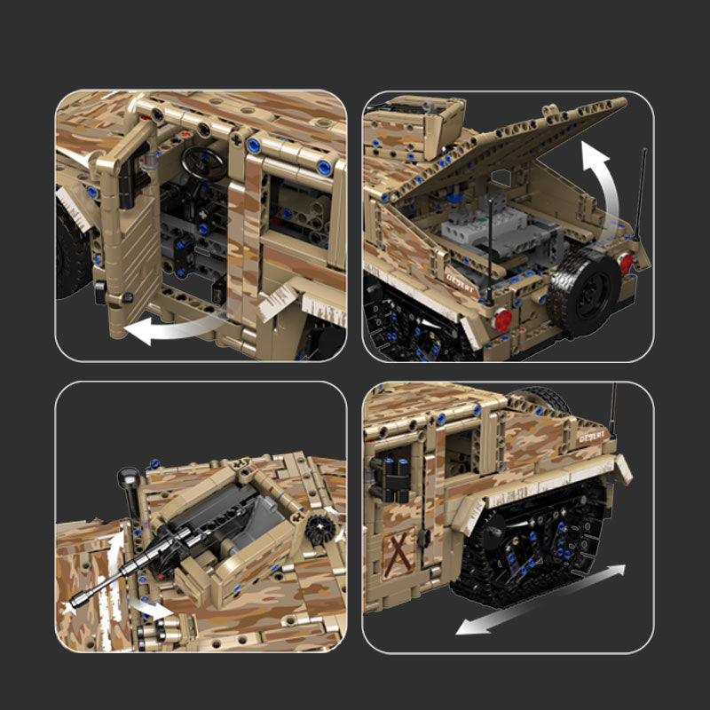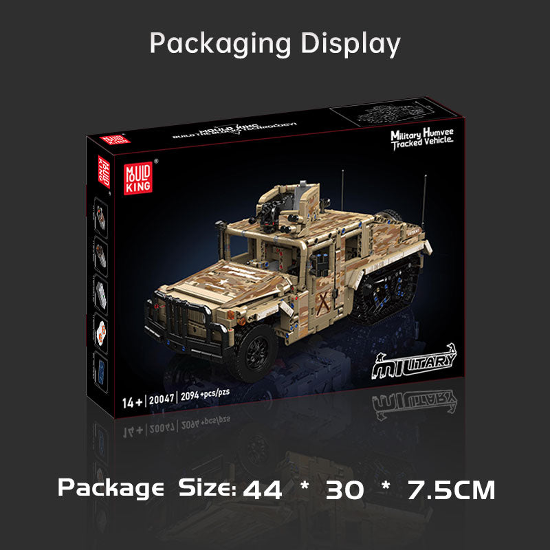 Der Mould King 20047 Humvee Tracked ist ein motorisiertes Militärfahrzeug mit über 2.000 Teilen. Das robuste Modell kombiniert realistische Kettenkonstruktion mit authentischen Details und funktionaler Steuerung. Ein besonderes Set für Technikliebhaber und Fans militärischer Fahrzeuge.